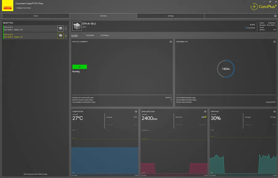 Coromant Capto® DTH Plus software helps you use your driven tool holder efficiently, predict the maintenance need and plan accordingly.