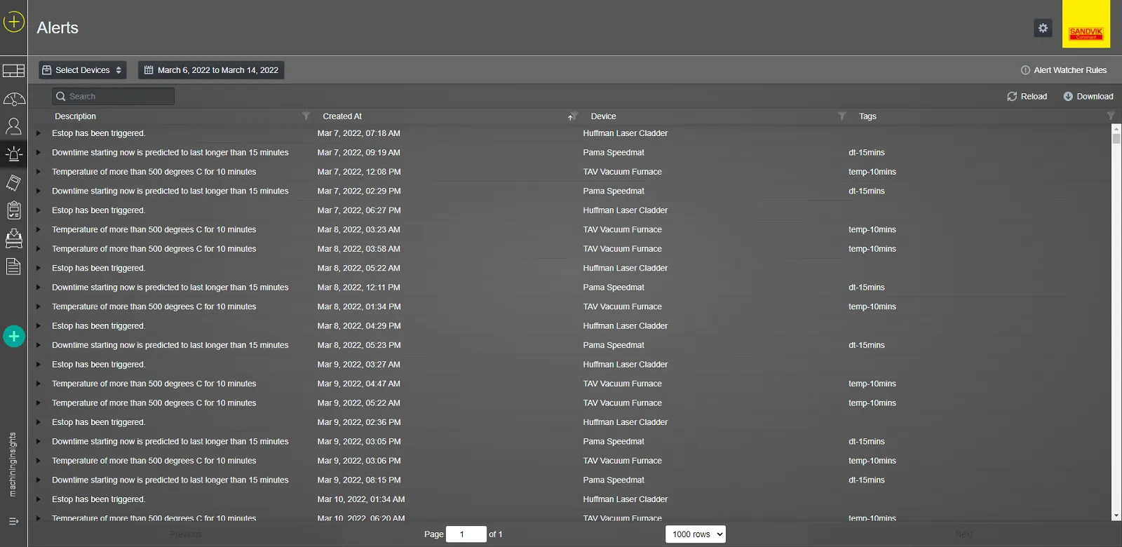 Are how the operator can alert other departments or managers of issues that need immediate attention without leaving their machine. The ticket report is how the operations team ensures that the issues are assigned and competed. - Download Device Data