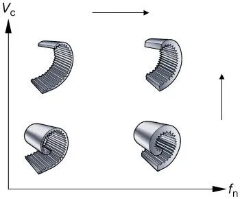 Recommendations: If problems with chip formation occur, increase the speed, vc, and decrease the feed, fn.