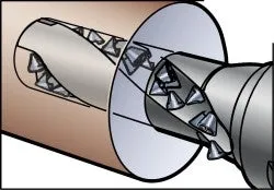 - Improved chip evacuation and possibly tool life in long-chipping materials such as stainless steels