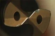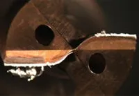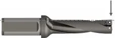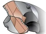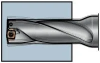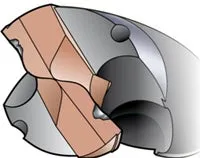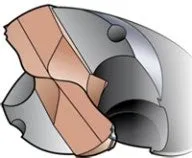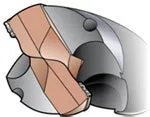 Chipping is a very common wear type when drilling into a pre-drilled hole. If the point angle is smaller on the pre-drilled hole, stability will be poor and the corners can be damaged. This can also happen if tolerances on point angles do not match. This can be avoided with custom-made drills or with flat bottom holes made by milling.