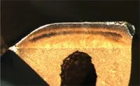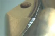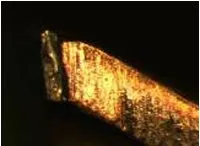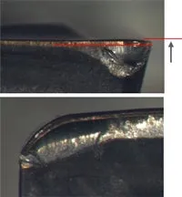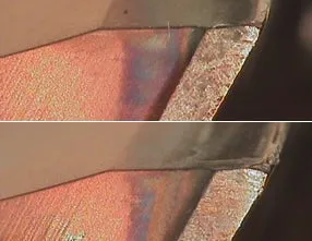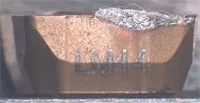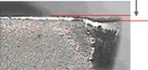 | Cutting speed and edge temperature too low | 1. Increase cutting speed when BUE in center 2. Decrease cutting speed when BUE in periphery |