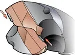 | Cutting forces too high | 1. Choose geometry with smaller corner radius 2. Reduce feed 3. Reduce feed at entrance |