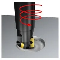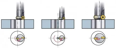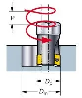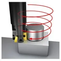 Circular ramping (also called helical interpolation, spiral interpolation, orbital drilling, etc.) is a simultaneous movement along a circular path (X and Y) together with an axial feed (Z) at a defined pitch. It is also an alternative to drilling.