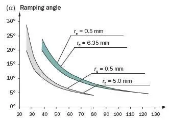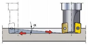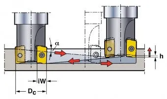 Note: When feeding the cutter at the maximum ramping angle, it must be lifted a distance of h before changing direction. This prevents damage to the central part of the cutter body.