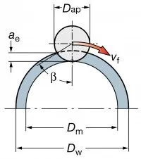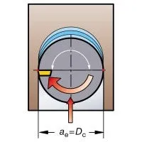 - The radial depth, ae, becomes much smaller when milling externally; therefore, a higher cutting speed can be used