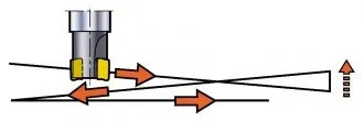 There are three cutting processes that occur simultaneously during the linear ramping operation:
