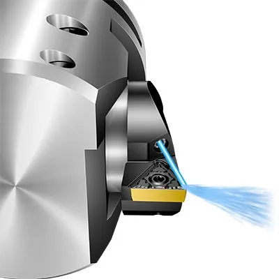 Excellent process repeatability due to controlled chip breakage with high-precision coolant. The nozzles direct the coolant jet to the cutting edge in order to efficiently break the chips, which are easily evacuated from the hole.