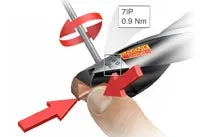 For quick and easy tool mounting, gently press the tip down and towards the support surfaces while tightening the screw to the recommended torque shown on the drill body.