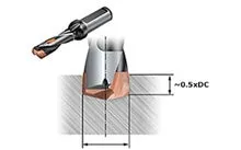 When drilling holes deeper than 6 × D, a pilot hole is needed for best hole quality.