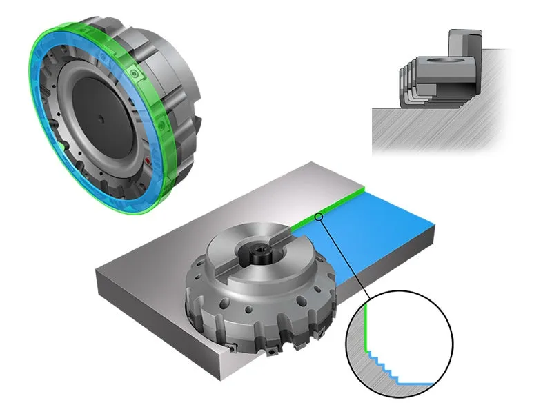Note: This concept is a face milling cutter, but there is a step form between the wall and the face.