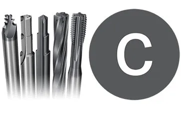 Available for ISO P and ISO K materials. Available in straight flute and spiral flute designs.