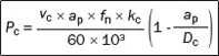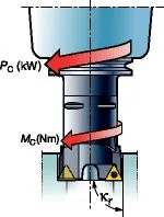 A potência que a máquina deve ser capaz de proporcionar às arestas de corte para direcionar a ação de corte. A eficiência elétrica e mecânica da máquina deve ser levada em consideração na seleção dos dados de corte.