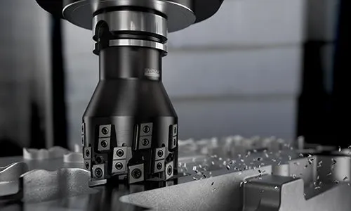 Tangentiellt fräskoncept för grovbearbetning, konstruerat för att skapa fina ytor i det första bearbetningssteget på nygjutna aluminiumdetaljer i en enda operation utan risk för gradbildning..