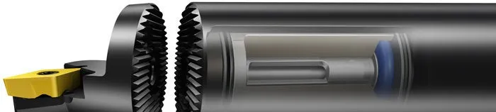 Ett mellanliggande område i den faktiska verktygshållaren med minimala utbytbara skärhuvuden har revolutionerat utbudet av verktyg som är speciellt anpassade och optimerade för ett stort antal svarvoperationer, framför allt invändigt. Denna modularitet har möjliggjorts genom utvecklingen av ett nytt tandat gränssnitt (SL) mellan huvud och verktygsadapter.