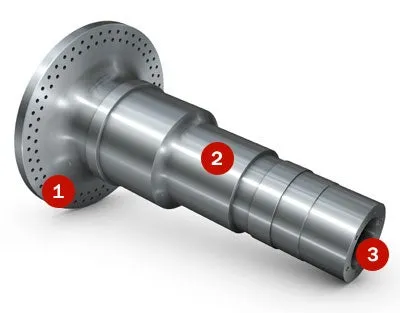 Det finns massor av material att avverka från huvudaxlarna, och högproduktiva svarvningslösningar innebär betydande förbättringar. Ur bearbetningssynpunkt kräver en smidd yta skär med säker funktion och hög temperaturtålighet på grund av de långa ingreppstiderna.