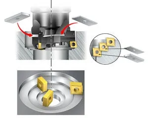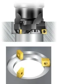 - Välj ett hållfast kvadratiskt skär med negativ grundform, för förbättrad bearbetningssäkerhet och minimalt slitage