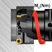 För hål med stor diameter krävs det högre vridmoment än för mindre hål. Grovuppborrningsverktyg med stor diameter har större skär och klarar därför större skärdjup än verktyg med mindre diameter. Kontrollera att maskinen kan leverera tillräcklig effekt och erforderligt vridmoment.