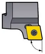- Stor skärnosradie (RE) ger högre bearbetningssäkerhet och möjlighet till högre matning men kan ge upphov till vibrationer. Rekommenderad nosradie att starta med är 0,08 mm (0,031 tum)