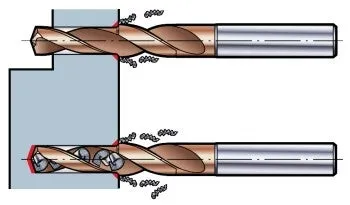 Börja alltid med att borra den stora diametern för att säkerställa att borrspetsen centreras och undvika att skäreggarna flisas ur.