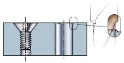 En annan vanlig typ av hål är steghål eller fasade steghål. Typiska applikationer är komponenter med försänkta skruv eller bultar.