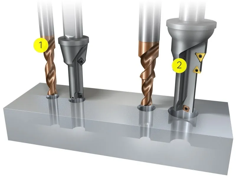 Det finns ett antal borr att välja bland, och genom cirkulärinterpolering kan till och med ett svarv- eller fräsverktyg användas.