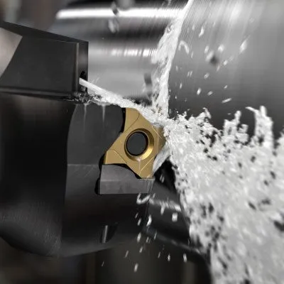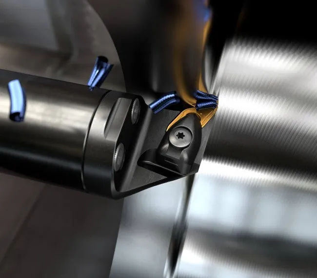 - Använd skärvätska för förbättrad spånkontroll och för att undvika plastisk deformation. Använd verktyg med invändig skärvätsketillförsel, och helst precisionstillförsel. Läs mer om skärvätska