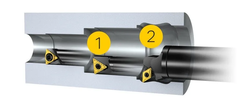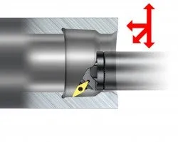 Invändig svarvning innebär att arbetsstyckets innerdiameter bearbetas. Två utmaningar vid invändig svarvning är långa överhäng och dålig spånavgång. Långa överhäng kan innebära problem med både avböjning och vibrationer. Vibrationer och dålig spånavgång kan orsaka skärbrott. Svårigheter med spånavgång kan också leda till dålig ytjämnhet.