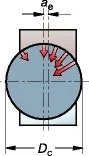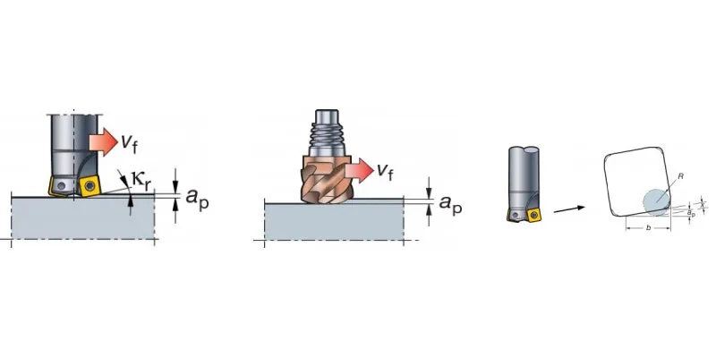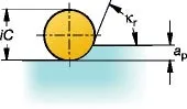 - Undvik axiella skärdjup som är mindre än skärets använda radie, om Ap är mindre än skärets radie ökar de axiella krafterna.