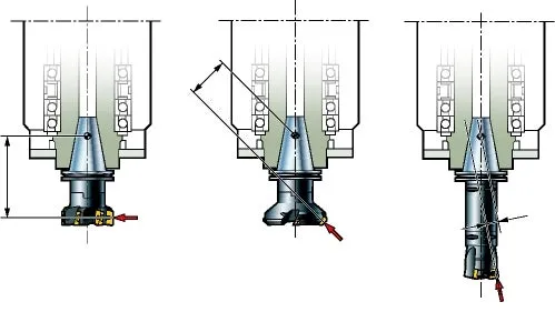 - Minska krafterna mot komponenten, kräv starkare verktygsfastspänning i axiell riktning än 45º-fräsar