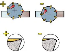 - Använd medfräsning för gynnsam spånbildning, det vill säga tjock till tunn spåna