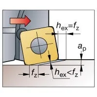 Observera: Undvik att bearbeta hela vägen fram till en 90° skuldra eftersom det eliminerar effekten av låg ställvinkel, vilket innebär att skärdjupet ökar väsentligt.