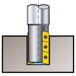 - Dc bör inte vara större än 75 % av håldiametern. Använd ett stort axiellt ingrepp – högst ae = 2 × Dc