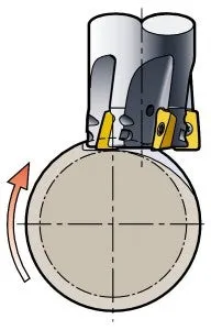 För planast möjliga yta med svarvfräsning är en fräs med liten diameter, med skärbredden ae, mindre än 40 % av effektiva fräsdiametern Dc, optimal.