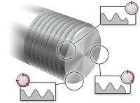 - Med en för liten diameter när det gäller utvändiga gängor, eller för stor när det gäller invändiga gängor, kan det hända att den resulterande gängdiametern blir fel.