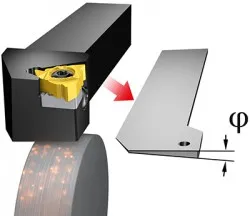 Med en stigning som är dubbelt så stor, tre gånger så stor osv., förändras stigvinkeln dramatiskt, vilket i extrema fall inte täcks av underläggsplattorna. För sådana extrema fall kan den utvändiga verktygshållaren fräsas/slipas i samma riktning som stigvinkeln.