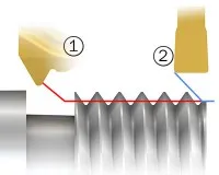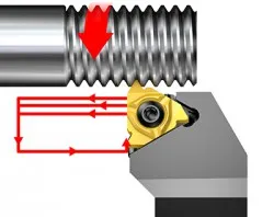 Du kan förbättra både produktivitet och skärlivslängd genom att förbearbeta gängan med ett svarvverktyg som har ett 55°- eller 60°-skär innan du gör den avslutande passeringen med ett gängverktyg.