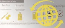 Rent praktiskt kontrollerar vårt mjukvara även våra hårdvarulösningar, som kan vara lådor med lock, bara öppna hyllor eller lagerautomater med spiraler, beroende på vilken kontrollnivå som behövs. Hyllorna och lådorna kan innehålla olika kvantiteter verktyg som användaren kan välja bland, medan spiralerna ger tillgång till ett verktyg i taget.