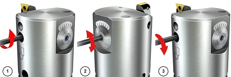 Obs! Justera alltid från en mindre till en större diameter. Om du går för långt går du tillbaka så att eventuellt spel i mekanismen elimineras, och närmar dig sedan den bestämda diametern inifrån igen.