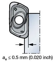 För extremt fin ytjämnhet rekommenderar vi att man använder en extra tättandad fräs. Observera att extra tättandade fräsar har rekommenderat max. ae = 0,5 mm (0,020 tum).